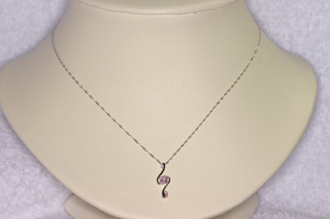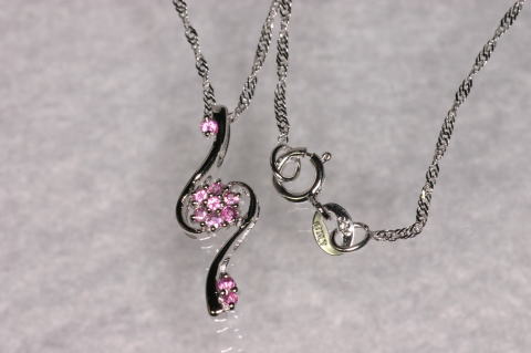 美しい10石のピンクサファイヤで「ト音記号」をデザインしてあります。お洒落なスタイルの魅力的なジュエリーです。