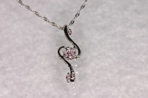 美しい10石のピンクサファイヤで「ト音記号」をデザインしてあります。お洒落なスタイルの魅力的なジュエリーです。