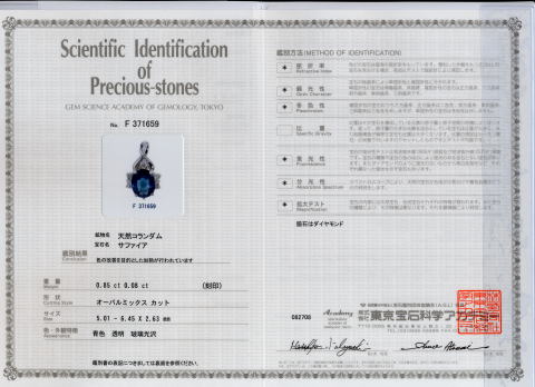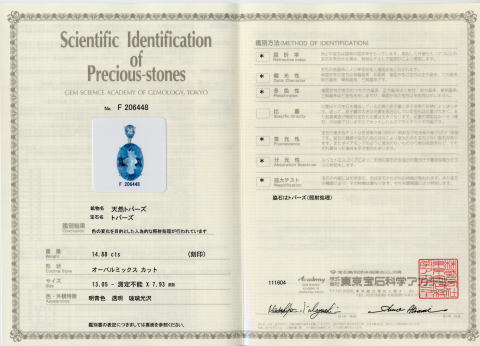 (当店から契約機関に依頼して作成した鑑別書の1例です。) 商品ごとに形態が異なることもあります。ご了承ください。 無料キャンペーン中は費用の表記に関係なく、4万円以上の商品で、銀行送金でお支払いを選択の方のみ無料で鑑別書作成いたします。 (ただし、作成期間が必要です。)